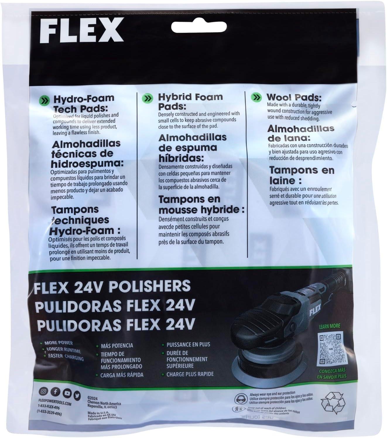 The FLEX 6.5” Compounding and Swirl Removal Foam Pad is designed for compounding and swirl removal when restoring heavily swirled and oxidized paint. Designed for use with a 6-inch backing plate and optimized for FLEX 24V cordless polishers, the pad features hydro-foam technology that prevents the pad from soaking up excess liquid, waxes, or sealants, making it ideal for finishing applications. Its self-centering design and buff back pad shape ensures constant contact with the polishing surface for even polishing compound distribution. The pad delivers a wax-ready finish in a single step and has a hook and loop backing for quick and easy pad changes.
