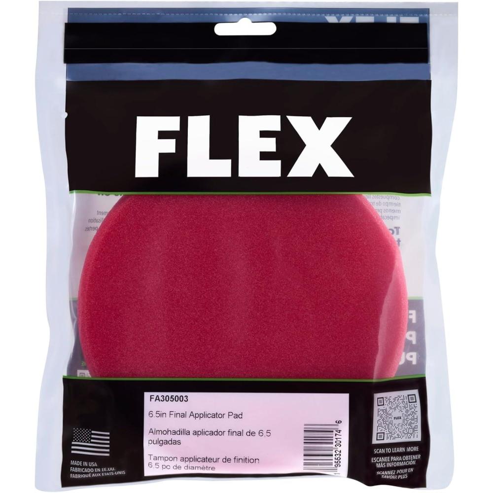 The FLEX 6.5” Final Applicator Foam Pad is designed for applying waxes, glazes, and sealants with even, flawless coats without swirls. Designed for use with a 6-inch backing plate and optimized for FLEX 24V cordless polishers, the pad features hydro-foam technology that prevents the pad from soaking up excess liquid, waxes, or sealants, making it ideal for finishing applications. Its self-centering design and buff back pad shape ensures constant contact with the polishing surface for even polishing compound distribution. It has a hook and loop backing for quick and easy pad changes.